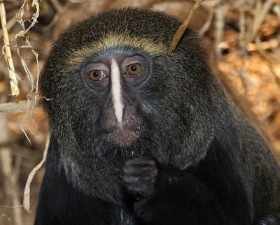 Determinado especialmente por su peculiar rostro de mochuelo (los ingleses le bautizaron con el nombre de (áfrica owl monkey), este cercopithecus es conocido desde la más remota antigüedad de la historia humana.